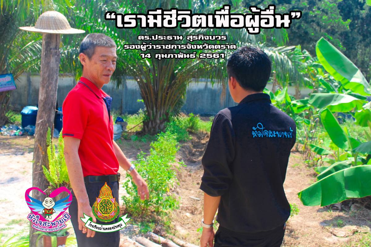 ดร.ประธาน สุรกิจบวร รองผู้ว่าราชการจังหวัดตราด และคณะ มาติดตามการขับเคลื่อนและขยายผลหลักปรัชญาของเศรษฐกิจพอเพียง จังหวัดตราด ณ โรงเรียนบ้านคลองประทุน (ในที่ประชุม)14 กุมภาพันธ์ 2561 |