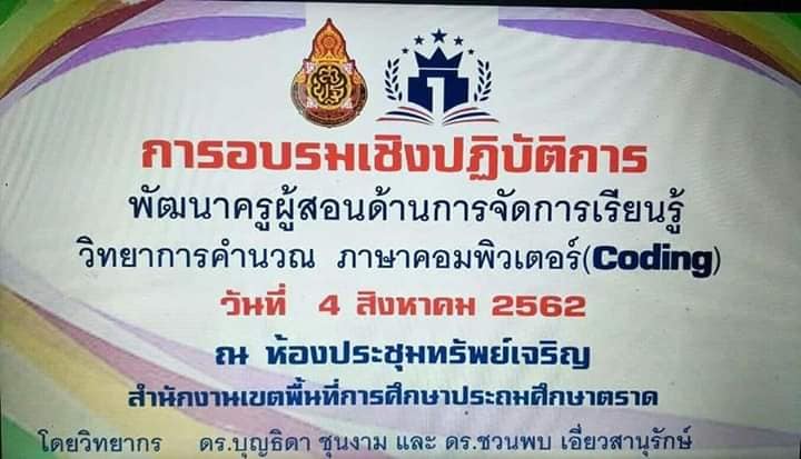 อบรมปฏิบัติการพัฒนาครูผู้สอนวิทยาศาสตร์และเทคโนโลยีจัดการเรียนการสอนวิทยาการคำนวณตามโครงการโรงเรียนคุณภาพประจำตำบล สพป.ตราด 4 สิงหาคม 2562