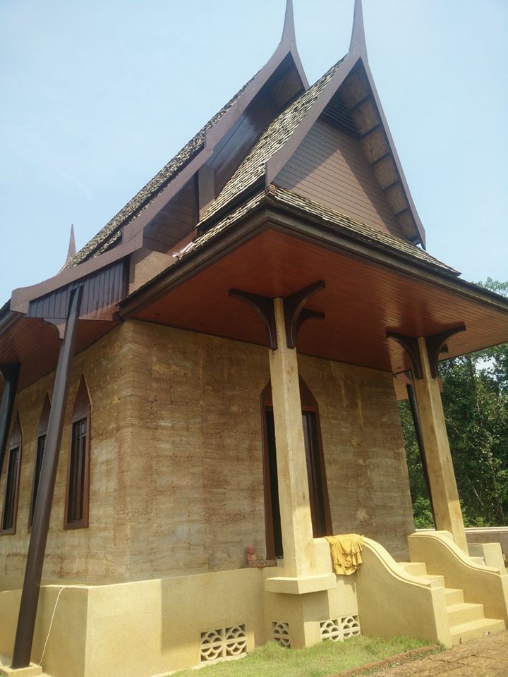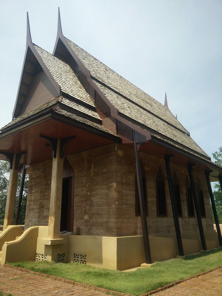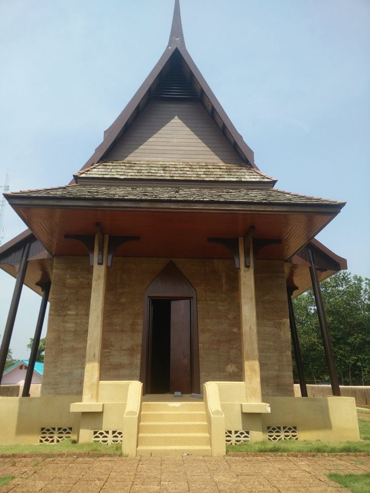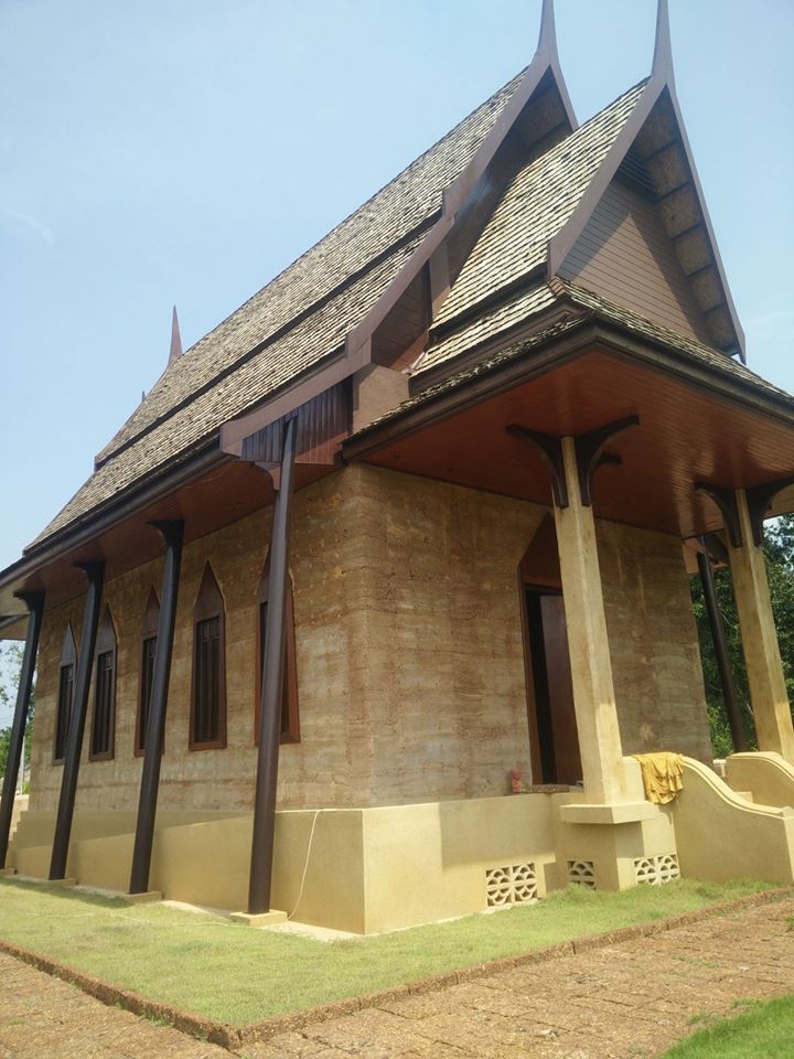 วิทยาเขตอุเทนถวาย โครงการพระอุโบสถดินแบบบดอัดดังนี้ ออกแบบสถาปัตยกรรมต้นแบบพระอุโบสถจากวัดพระรามเก้ากาญจนาภิเษก ขนาดความกว้างประมาณ6 เมตร ความยาว 17.5 เมตร ความสูงจากพื้นดินถึงยอดประมาณ 11.00 เมตร ผนังโบสถ์ใช้ระบบดินแบบบดอัดมี ความหนาประมาณ 39 เซนติเมตร ใช้ผสมกับปูนซีเมนต์ผสมกับ ดินลูกรังท้องถิ่น 120 ลูกบาศก์เมตร ด้วยอัตราส่วน1:7 โดยปริมาตร ผนังไม่จำเป็นต้องมีงานฉาบปูน ทาสี เพราะมีสีดินธรรมชาติท้องถิ่นที่สวยงามอยู่แล้ว ประตู-หน้าต่าง ใช้แผ่น VIVA BOARD ใช้เป็นเป็นโครงสร้างกรอบบาน ผังลงไปขณะก่อสร้างพร้อมการบดอัดผนังโบสถ์ หลังคาคัดเลือกวัสดุมุมด้วยกระเบื้องพลีม่า งบประมาณทั้งสิ้นประมาณ 1.5 ล้าน นักศึกษาเข้าร่วมโครงการประมาณ 60 คน |