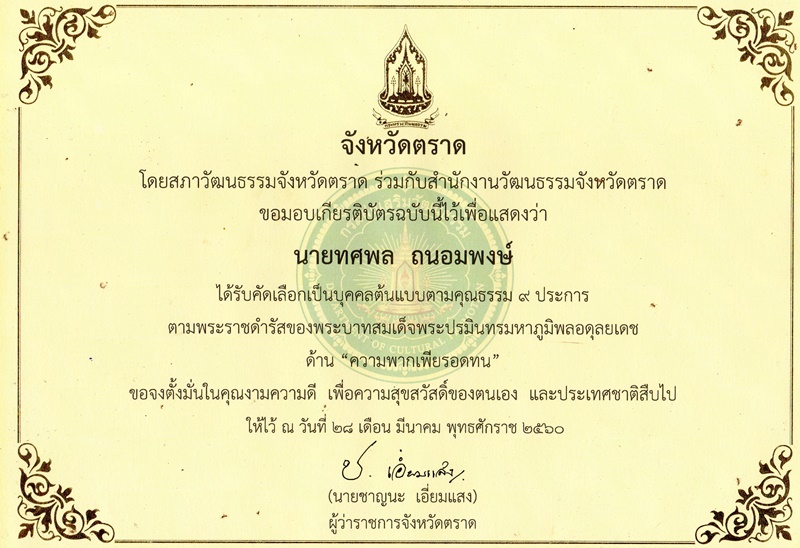 บุคคลต้นแบบที่ประพฤติปฏิบัติตามคุณธรรม ๙ ประการ ตามพระราชดำรัสของรัชกาลที่ ๙ ประจำปี ๒๕๖๐