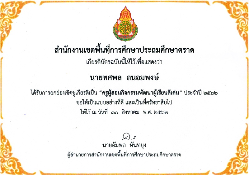 ครูผู้สอนกิจกรรมพัฒนาผู้เรียนดีเด่น2562