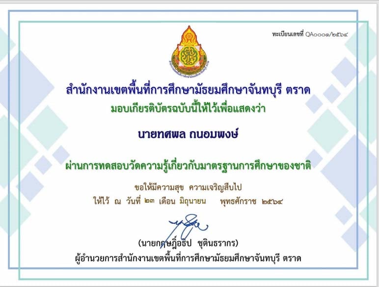 ผ่านการทดสอบวัดความรู้เกี่ยวกับมาตรฐานการศึกษาของชาติ
