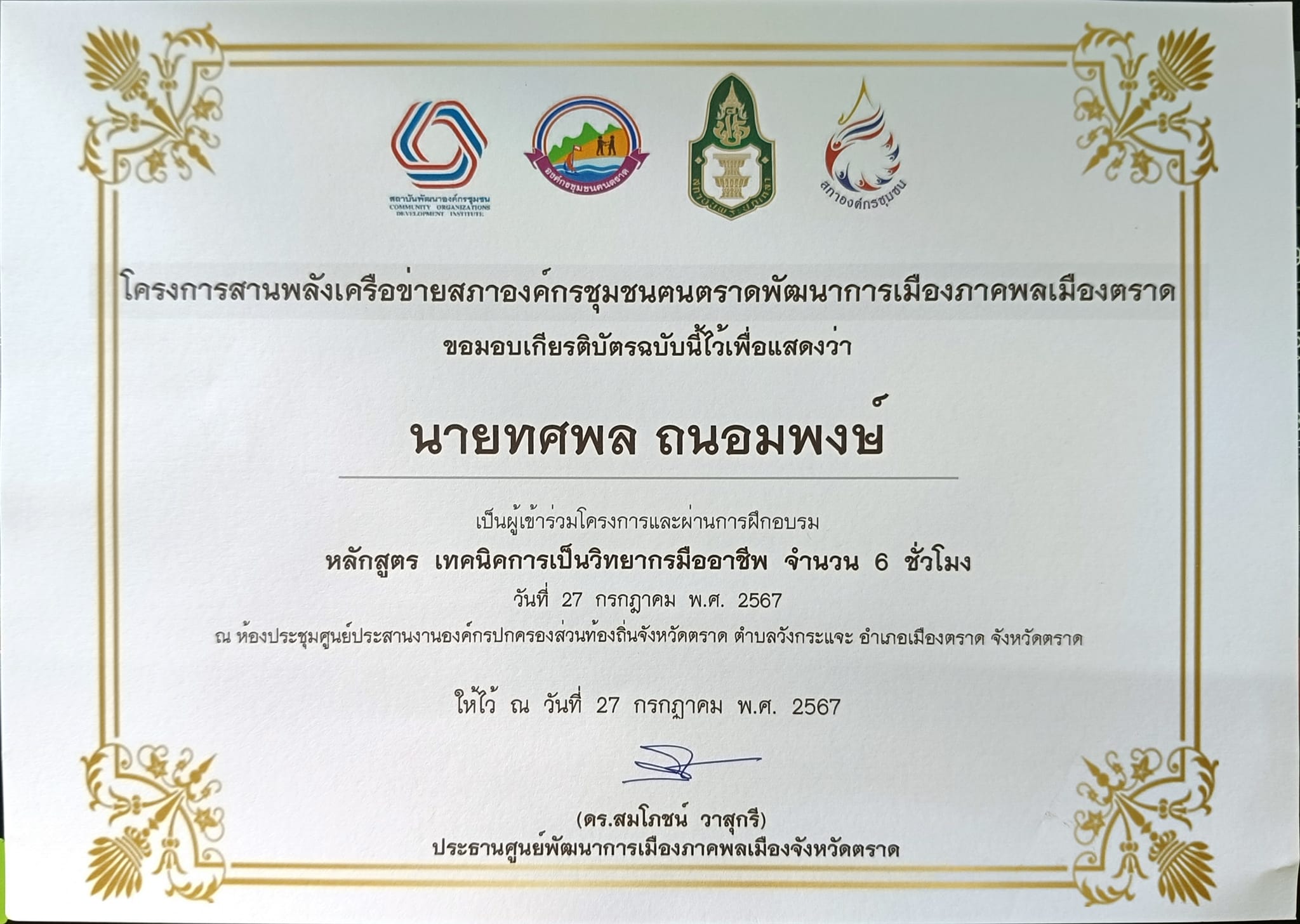 เกียรติบัตรการอบรม/วิทยากร