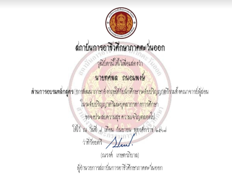 เกียรติบัตรการอบรม/วิทยากร